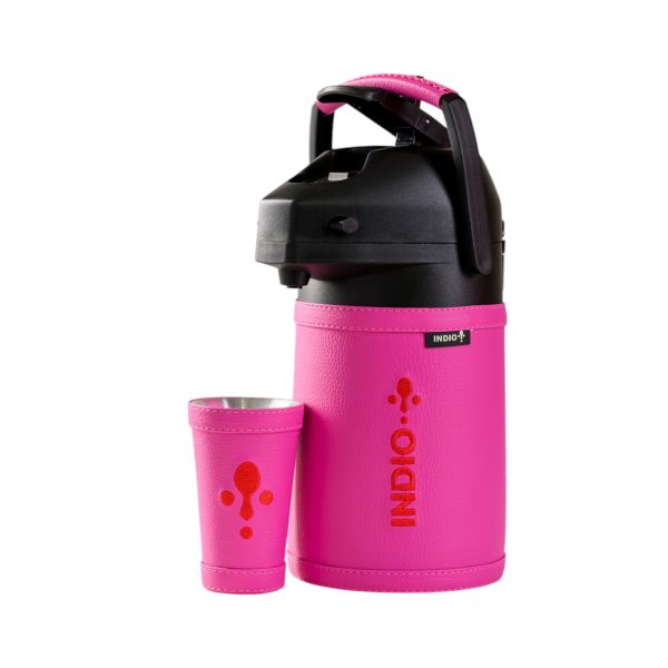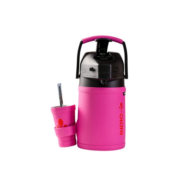 ¡COMBO MARKETPLACE! TERMO TERERE INDIO 1.9 LT SIMIL CUERO FUCSIA + VASO VIAJERO 1.1L FUCSIA