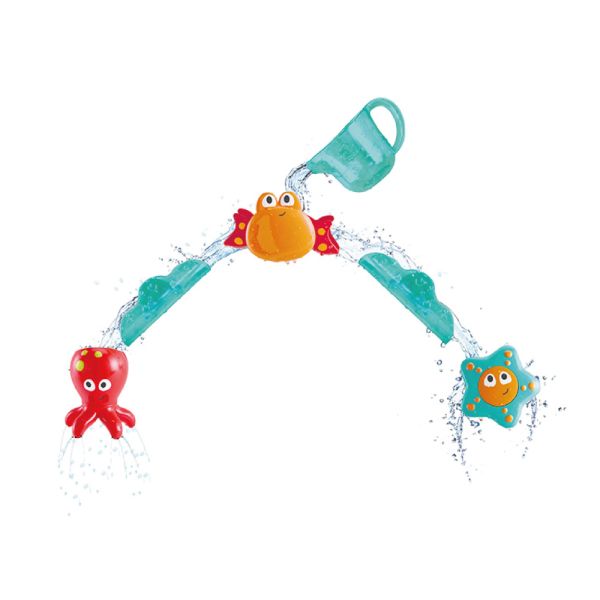 Este divertidísimo juego de baño se adhiere a la bañera y ofrece diferentes maneras de jugar con el agua a través de sus tres animales.