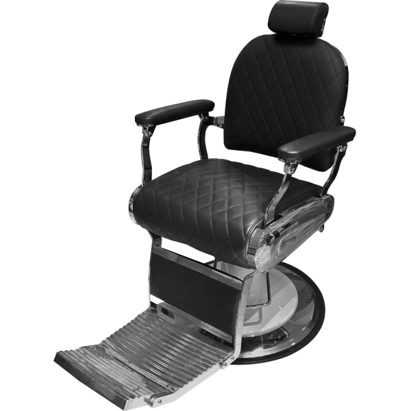 Su estructura cromada brinda resistencia y un look sofisticado, mientras que el apoyapiés reclinable y el respaldo ajustable aseguran una experiencia cómoda tanto para el barbero como para el cliente. Ideal para cortes, afeitados y tratamientos de barbería con estilo.