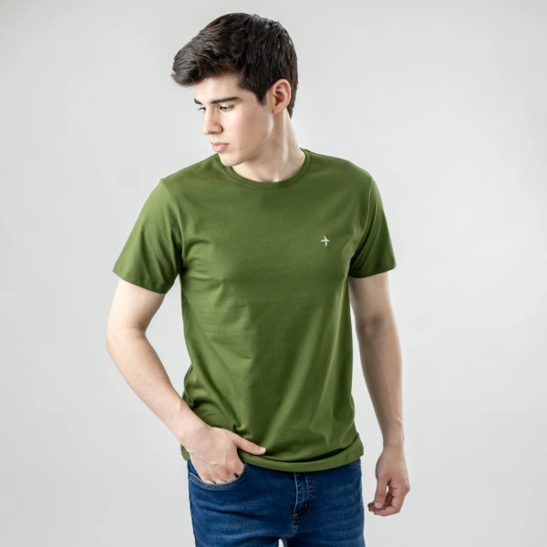 REMERA BACO BASICA SLIM FIT CON BORDADO VERDE M REMBC192