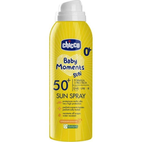 EL PROTECTOR SOLAR AEROSOL 360 SPF 50+ DE CHICCO OFRECE PROTECCIÓN TOTAL Y UNIFORME CONTRA LOS RAYOS UVA Y UVB PARA LA PIEL SENSIBLE DEL BEBÉ Y DEL NIÑO, CON APLICACIÓN RÁPIDA DESDE CUALQUIER ÁNGULO GRACIAS A SU INNOVADOR FORMATO AEROSOL 360.