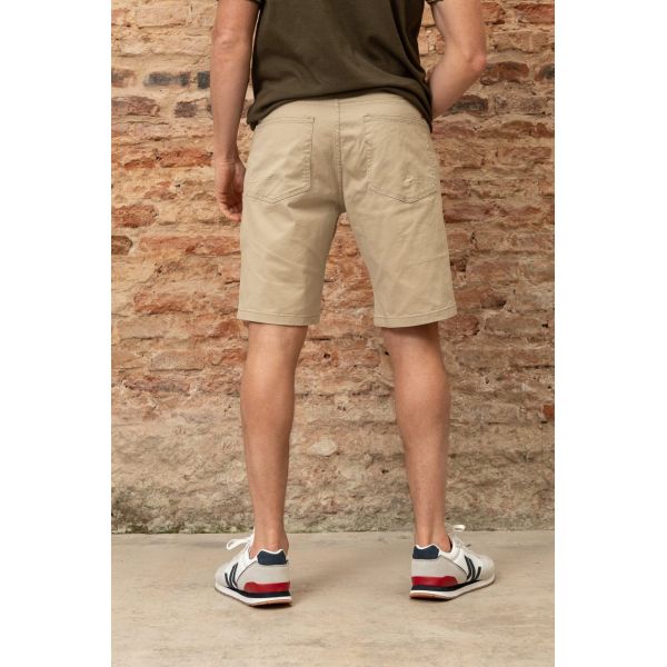 BERMUDA 5 BOLSILLOS DE GABARDINA PARA HOMBRE (98 % ALGODÓN Y 3 % SPANDEX) COLOR CAMEL. IDEAL PARA USO CASUAL.