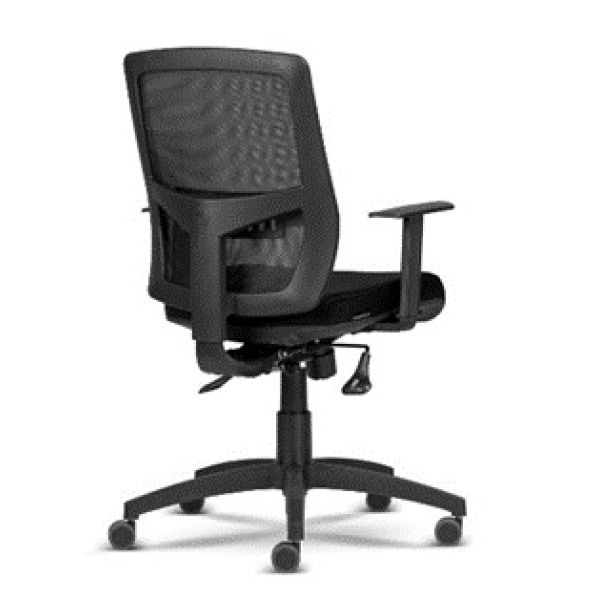 LÍNEA C138 APOLLO NEW:Silla giratoria, respaldo alto fijo en malla, asiento de goma espuma, tela negra, mecanismo back system, araña baja 350mm brazo con 1 regulacion de altura