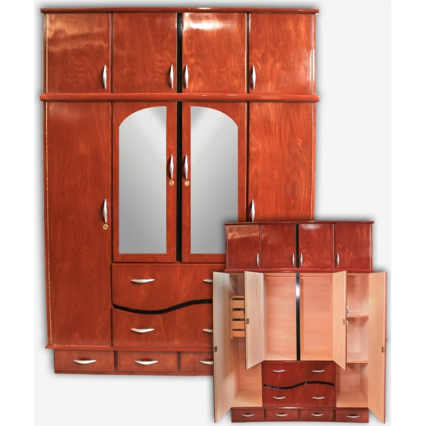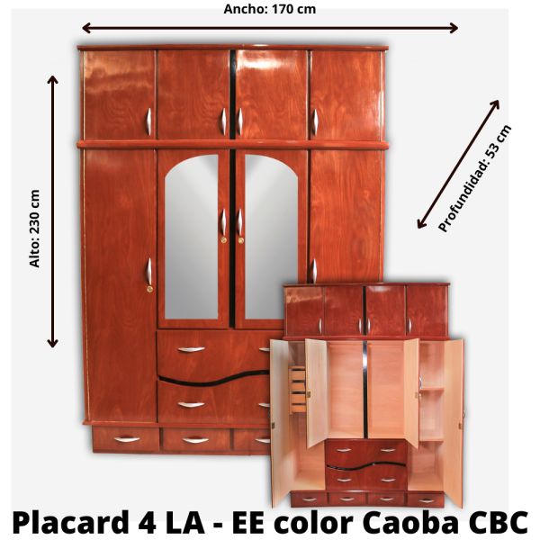 ROPERO PLACARD CBC 4 PUERTAS C/VALIJERA LA ESPEJADO COLOR CAOBA