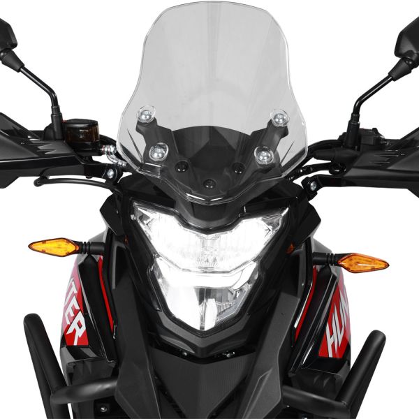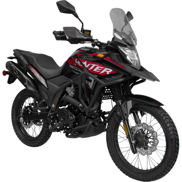 ¡Hunter 230! Domina el camino, sin pedir permiso. Cuándo el destino te llama, la Hunter 230 responde con fuerza. Su motor de 230 cc, 16 HP y 18 Nm de torque, junto a su caja de sexta, te dan el poder y la agilidad para conquistar cualquier ruta, sin importar lo que se cruce en tu camino. La potencia se traduce en control gracias a su cubierta trasera de 120 mm, que te brinda tracción y estabilidad en todo terreno. Y cuando el escape Hyperflow ruge, sabes que no estás pasando desapercibido: estás marcando presencia. Pensada para los que no se detienen, la Hunter te acompaña con un asiento de dos niveles, suspensión monoshock trasera y un parabrisas alto que protege tu viaje. Su tanque de 16 litros te lleva más lejos, sin mirar atrás. La protección está en su ADN: carenaje robusto, protector de cárter y cubre puños que cuidan tanto la máquina como al piloto. Porque la aventura no siempre avisa. Y en tecnología, no se queda atrás: iluminación FULL LED 360°, cargador USB para mantenerte conectado, y un velocímetro digital a color que te mantiene informado en todos los terrenos.