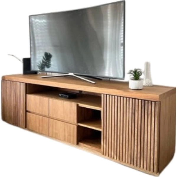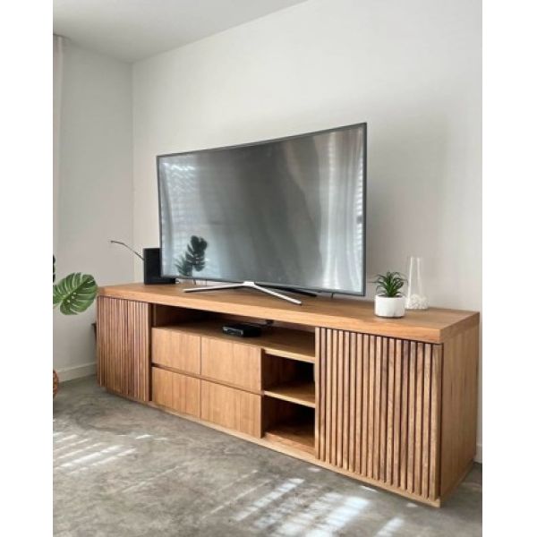RACK TV UMU DE MADERA PARAISO LUSTRE NATURAL ACABADO MATE MEDIDAS 240CM X 40CM PROF X 65 CM ALT