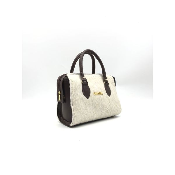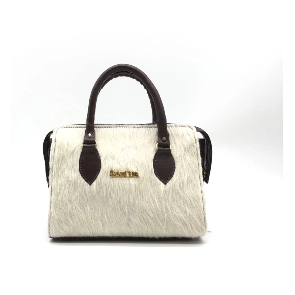 Esta cartera Saint Cuir está confeccionada en cuero legítimo con acabado en pelo natural, lo que le otorga una textura exclusiva y un estilo sofisticado. Los laterales y las asas en cuero liso aportan estructura, resistencia y contraste, mientras que los herrajes metálicos en tono dorado realzan su diseño de lujo. Ideal para quienes buscan un accesorio único, de alta calidad y con presencia. Perfecta para uso diario elegante o para destacar en ocasiones especiales.