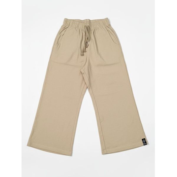 Pantlón Fakini modelo wide, en tendencia, color beige en un algodón ligero y cómodo para las niñas, con gomas en la cintura, lo que hace adaptable y bolsillos a los costados.