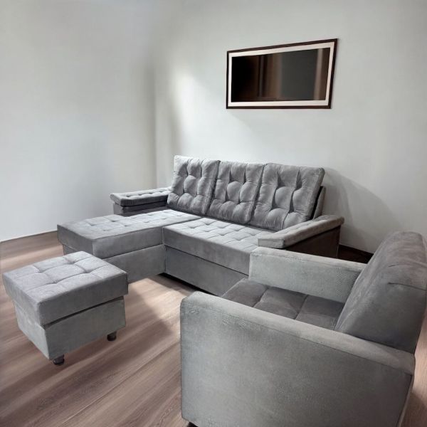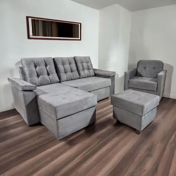 SOFA UNANIME YPANE GRIS + POLTRONA + PUFF