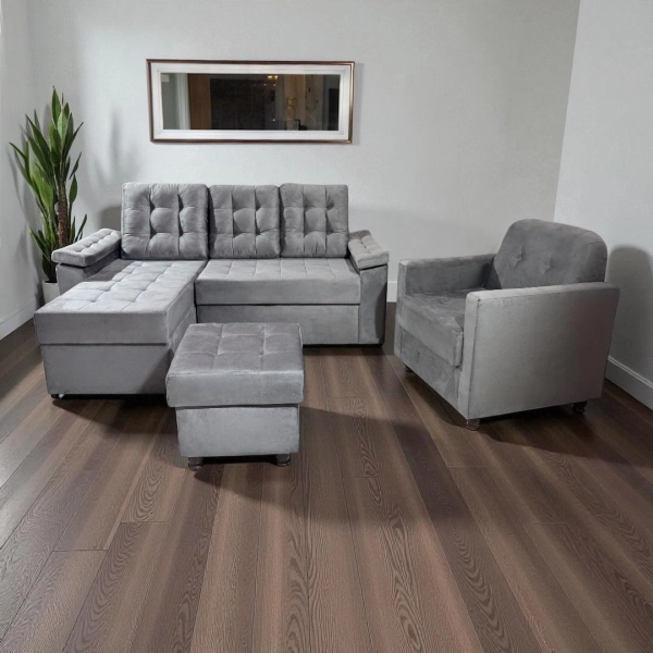 Transforma tu hogar con este combo de sala moderno y sofisticado, ideal para quienes buscan comodidad sin renunciar al estilo. Este conjunto es perfecto para salas familiares, departamentos, estudios o cualquier espacio donde el diseño y la funcionalidad se encuentren.