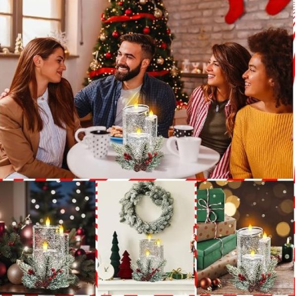 - Material resistente: hecha de acrílico transparente y duradero, con ramas de pino y bayas simuladas firmemente fijadas.