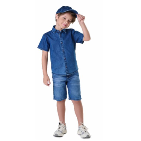 9513 CAMISA M/C JEANS 89% ALGODÓN 11% POLIESTER TRAJADINHO MASCULINO TALLE 2 COLOR AZUL-JEANS