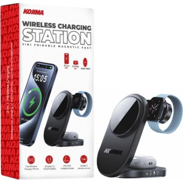 CARGADOR PARA ESCRITORIO WIRELESS KOJIMA CHARGING STATION NEGRO 3 EN 1